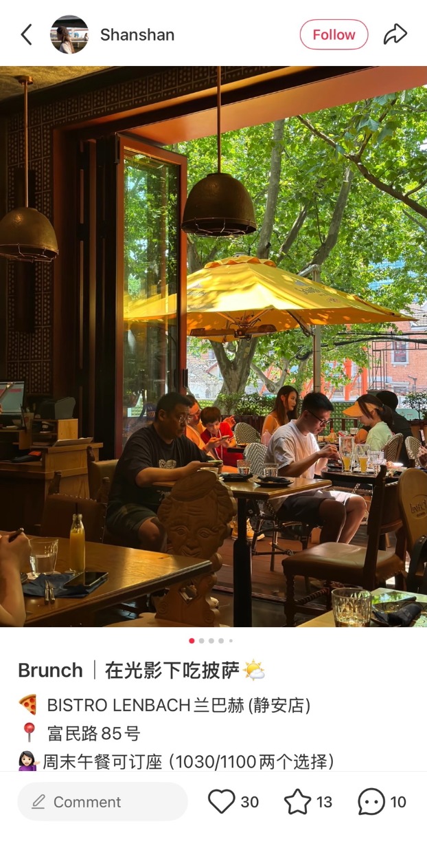 “今年5月上海总体天气晴好,外摆位带动餐饮消费增长比较明显,周末时段每家餐厅几乎都要翻六七轮台面,除了午餐、晚餐的正餐时段,下午茶时段餐厅台面也会翻1-2轮。”