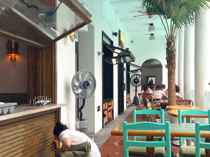 兰巴赫上海负责人CIN介绍,这里的餐厅大多经营到深夜24时,只要不是极端天气,前来用餐的客人都喜欢紧邻泳池边的座位,感受“城市微度假”的氛围。因此,兰巴赫在餐厅设计、外摆位桌椅设置上下了功夫,围绕泳池边的骑楼连廊都安装了吊扇,夏季还增开鼓风机宜人配资,每个外摆位下方均安装了暖灯,确保冬暖夏凉,一年中大约有10个月都适合坐在户外用餐。